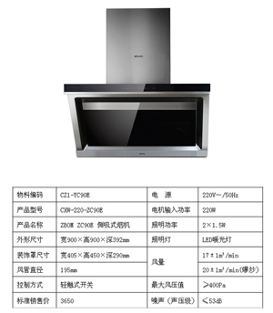 1、侧吸式整体拉伸集烟腔,吸烟效果好一体黑玻,简洁时尚,清洁方便。